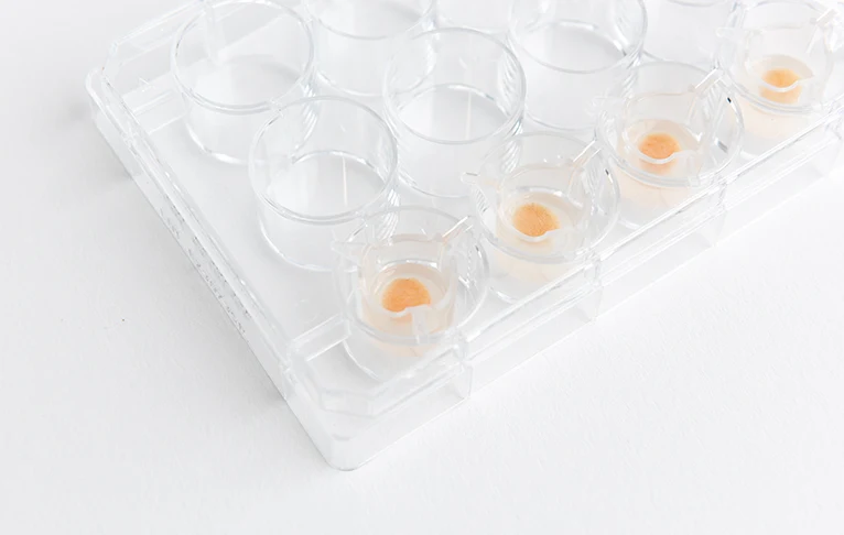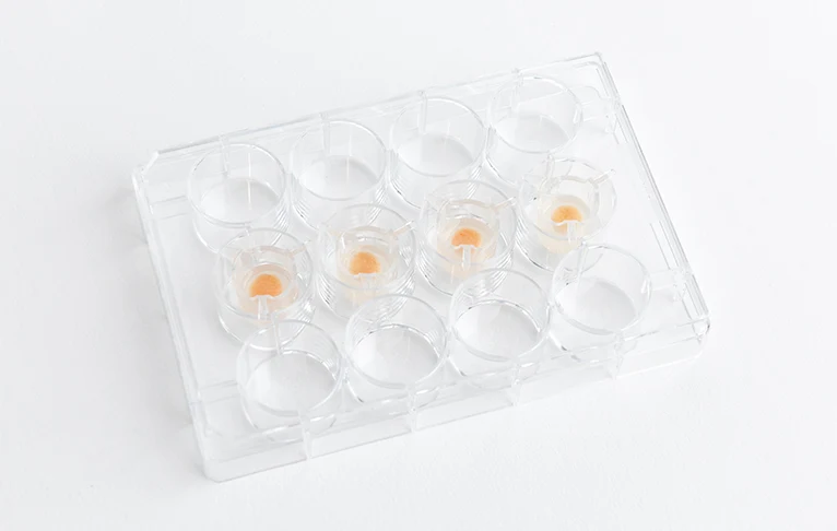 • The ordered amount of models, which are placed in individual inserts in a 12-well plate. The plate is then loaded in a transport plate covered by a lid. Every skin biopsy is firmly maintained in our proprietary matrix within the insert.